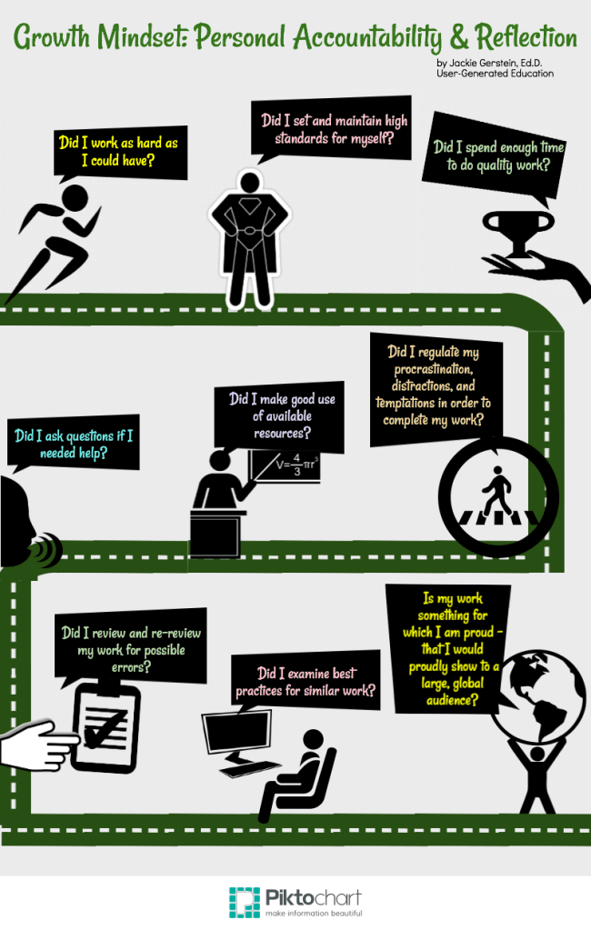 Last term I set a goal to post more often on my site about the things happening in my professional life. I was unable to meet this goal due to family issues that took more of my time than usual. I was only able to post the course assignments. I will prioritize giving more attention to posting about my own connections and interests going forward. As I continued to understand and develop my own growth mindset, I found this graphic that really resonated with me as a student. I would like to come back to this graphic as I prepare each of my assignments to ensure I am taking an active role in my learning and understanding. I am nearing the halfway point of the program. I am pleased to see how much I have learned at this point and excited about how much more growth is in front of me.