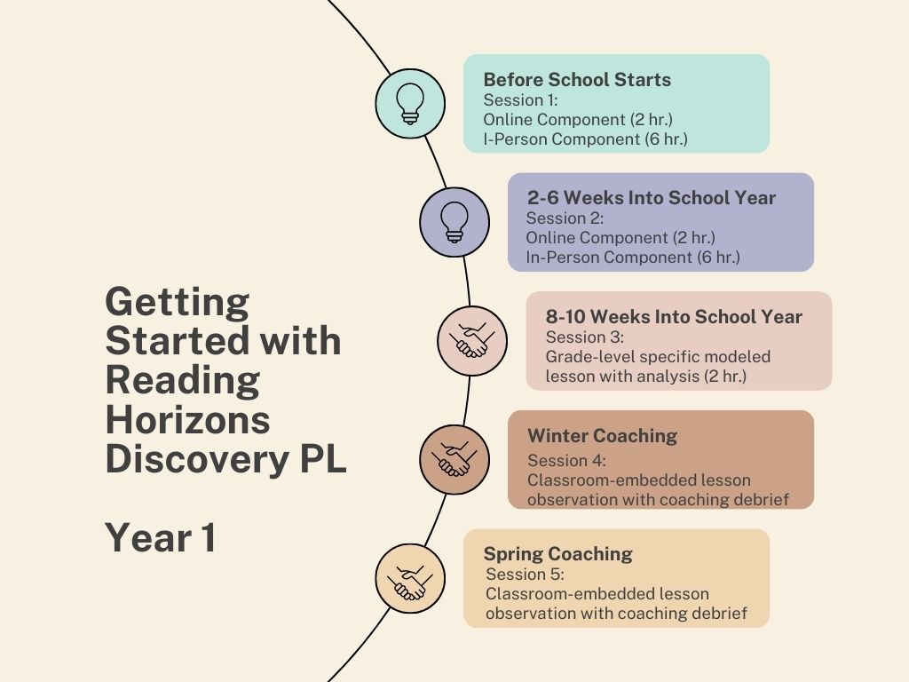 SPECIFIC: This PL plan provides information that is specific to the content area of teaching reading to K-3 students using the Reading Horizons curriculum. It becomes even more specific as teachers move into the modeled lesson and job-embedded coaching components. These modules of the PL are conducted in a teacher’s classroom with the teacher’s actual students. This type of specificity allows for all learning to be completely relevant and immediately useful.